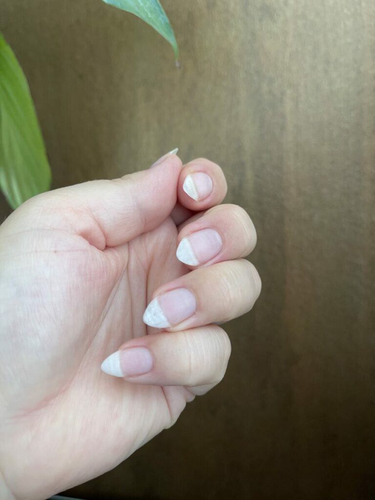 Die vollständige Erholung kann je nach Nageltyp und Wachstumsgeschwindigkeit 3 bis 6 Monate dauern. Auch das regelmäßige Tragen von Nagellack kann die Nägel weicher machen, aus denselben Gründen. Daher denkst du also, dass du deine Nägel „kaputt“ gemacht hast.