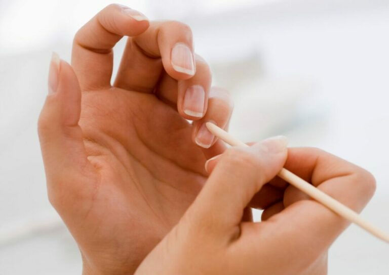 Am einfachsten und schonendsten entfernt man die Nagelhaut, indem man sie vorher einweicht. Daher ist der vorherige Punkt bei deiner perfekten Maniküre unbedingt zu beachten. Anschließend kann die Nagelhaut ganz sanft mit einem Rosenholzstäbchen oder mit einem Hufstäbchen aus Silikon zurückgeschoben werden.