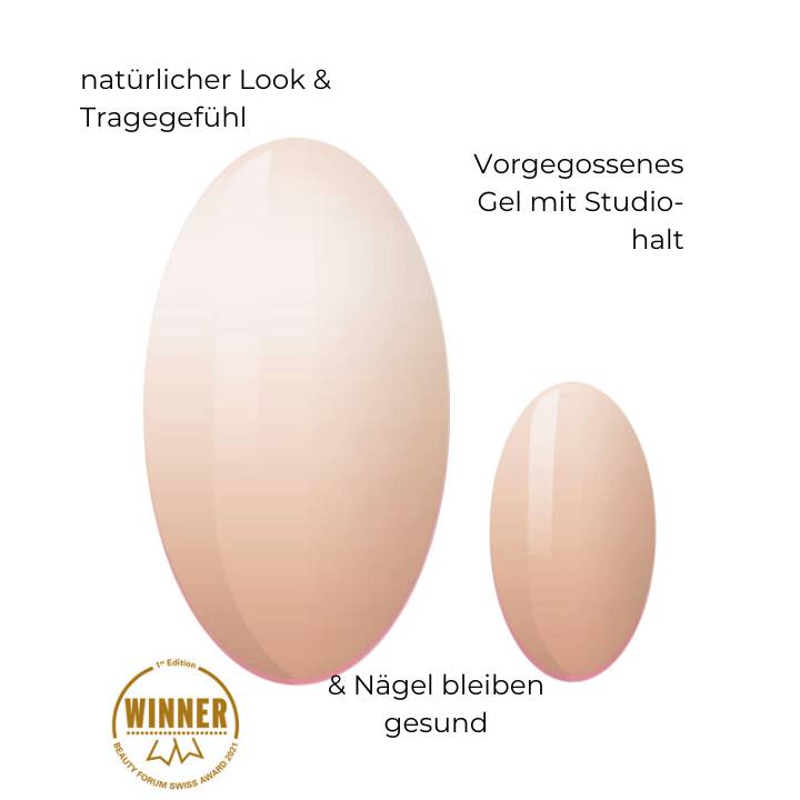 Gewöhnliche Nagelfolien haben einen Halt von bis zu 14 Tagen. Unsere UV-Nagelfolien halten Dank ihrer Technologie deutlich länger. Nämlich bis zu vier Wochen, oder bis du sie abmachst. Das bestätigt auch BUNTE.de (nicht repräsentativer Test) und unser Sieg des Swiss Beauty Innovation Award.